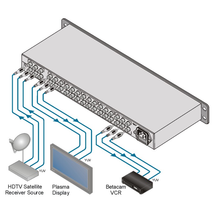 | INPUTS: | 1 component video with loop (Y, Pb/Cb, Pr/Cr) on RCA connectors. |