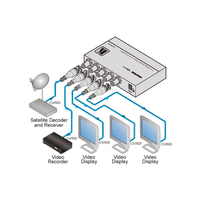 4 composite/SDI video, 1Vpp/75Ω on BNC connectors. |