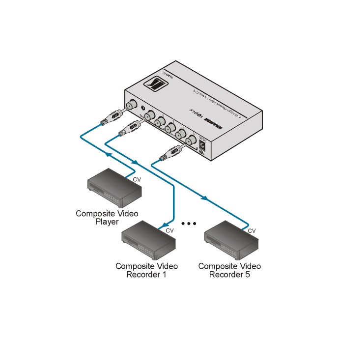 5 composite video, 1Vpp/75Ω on RCA connectors. |