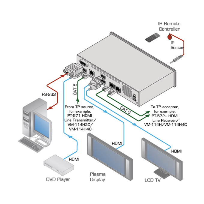 DGKat™ Signal Integration - Kramer’s unique technology for converting TMDS as well as control and communication to signals that run over twisted pair cables. We strongly recommend using Kramer DGKat™ cables designed specifically for optimum performance.